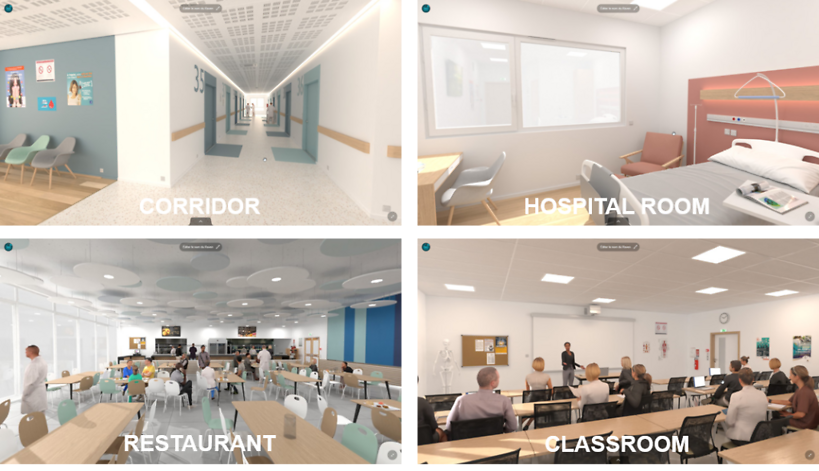 Immersense is a guided immersive experience, to present the benefits of the Saint-Gobain multi-comfort approach, using a multi-user virtual environment dedicated to University Hospital.