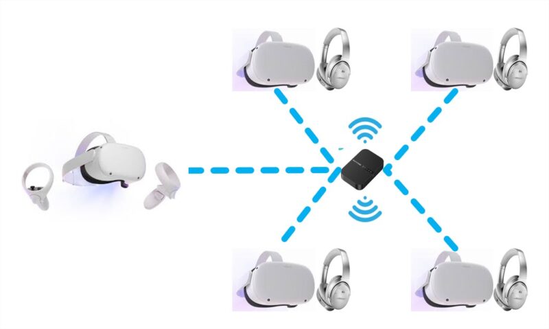 - A Wifi router used to create a local network on which each VR headset will be connected.
